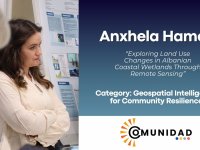 In the category COMUNIDAD: Geospatial Intelligence for Community Resilience, Anxhela Hameti from the Department of Agroecology and Crop Production, Faculty of Agrobiology, Food and Natural Resources, CZU was recognised for her outstanding submission, “Exploring Land Use Changes in Albanian Coastal Wetlands Through Remote Sensing.” Her story masterfully demonstrates how satellite data, remote sensing, and spatial analysis can reveal environmental transformations and guide community-level decision-making. The winning narrative brings the COMUNIDAD mission to life by illustrating the power of geospatial intelligence to support resilience in landscapes facing mounting climate and ecological pressures.